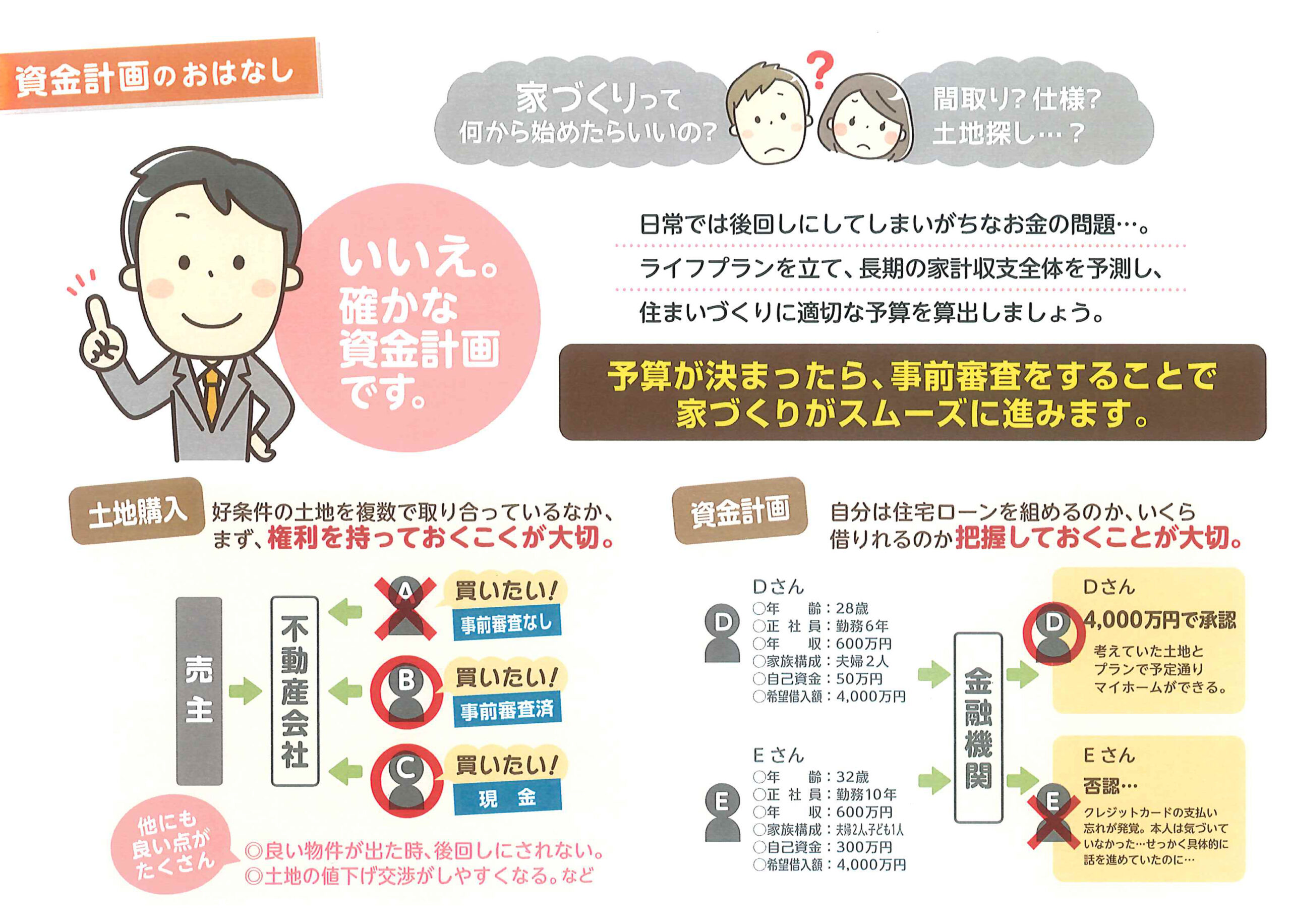 ◎予算が決まったら、事前審査をすることで家づくりがスムーズに進みます。
