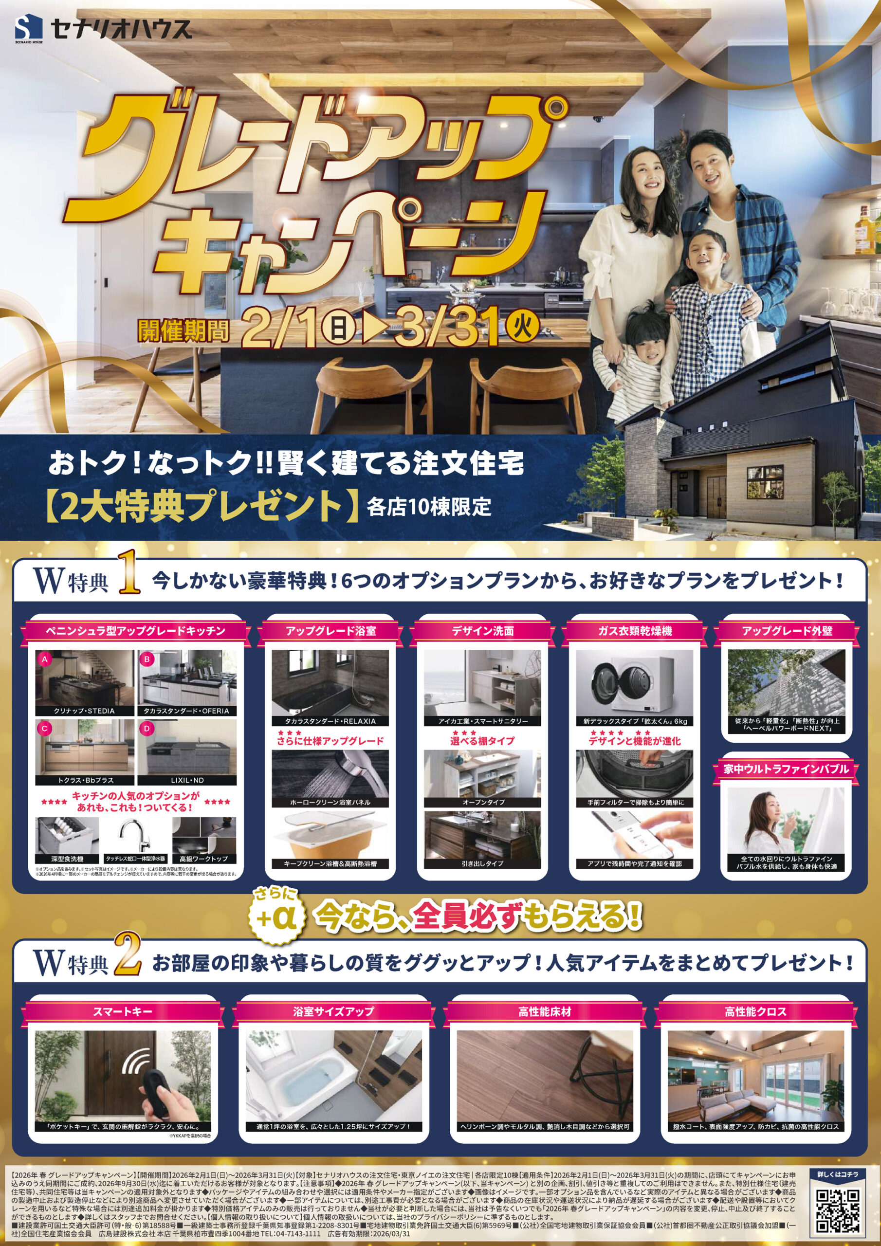 《2/1〜3/31限定》おトク!なっトク!豪華「W特典」で賢く建てる、注文住宅グレードアップキャンペーン開催!🌟