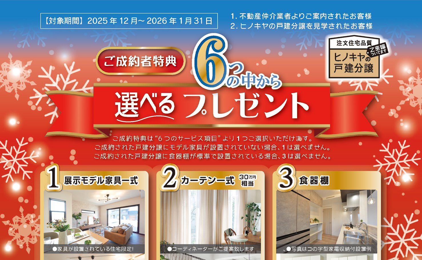 ご成約者特典 6つの中から選べるプレゼント!🎁