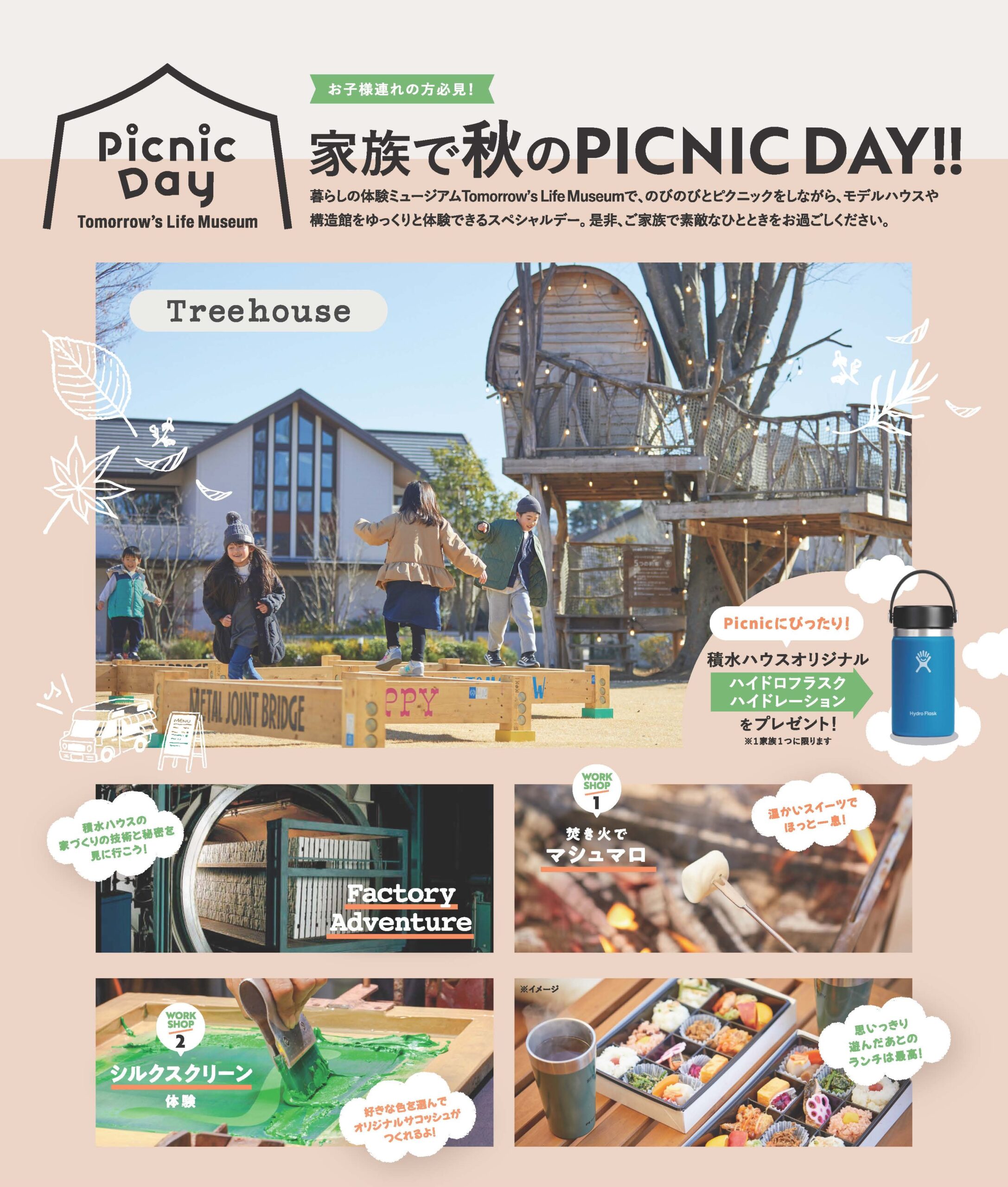 住まいづくりに興味のあるご家族が、遊ぶ、食べる、学ぶ、くつろぐ、を一気に体験できるイベントを開催致します。