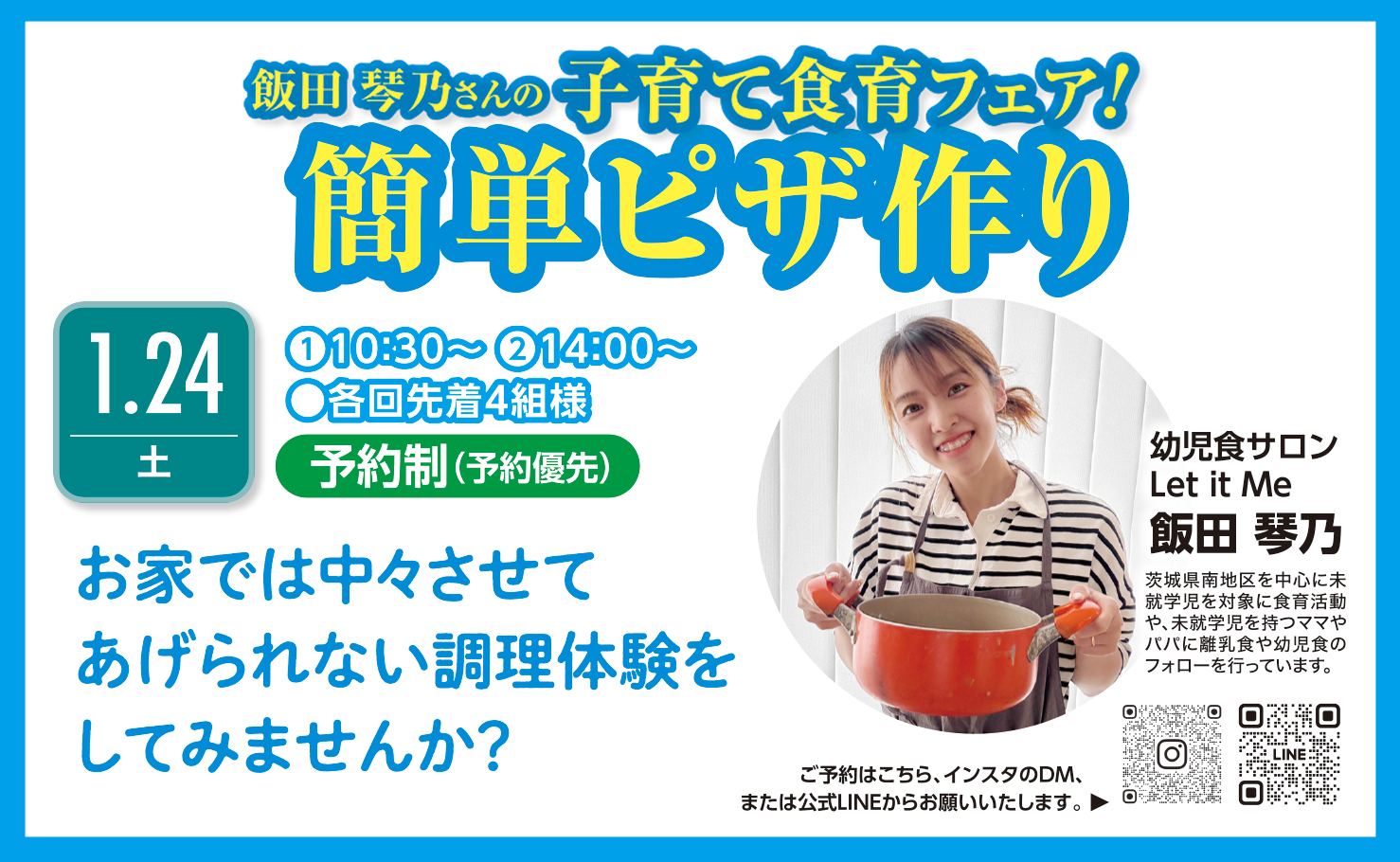 【2026年1月24日(土)】飯田琴乃さんの子育て食育フェア!簡単ピザ作り