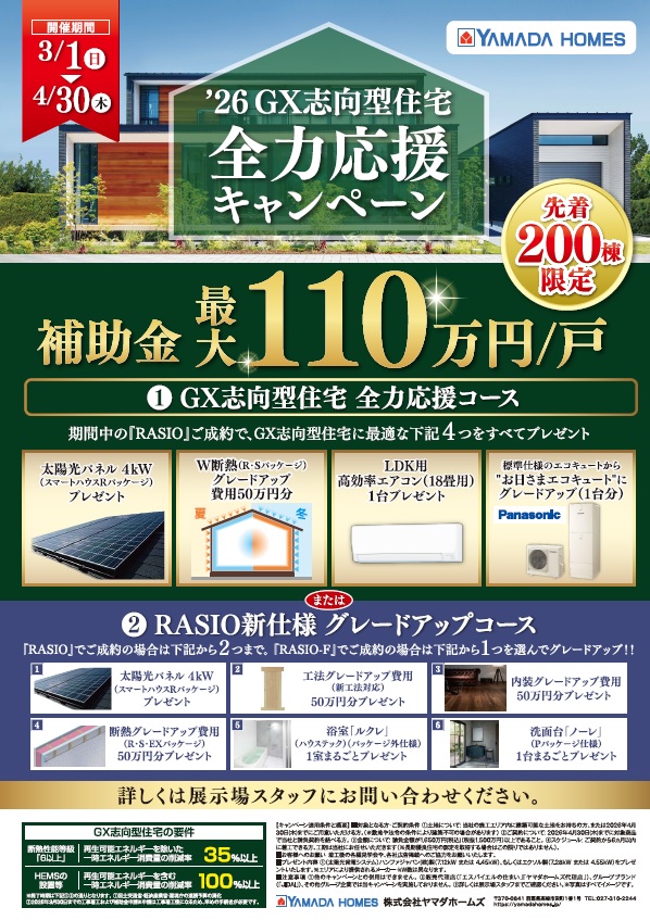 ★★先着200棟限定★★ ’26 GX志向型住宅 全力応援キャンペーン